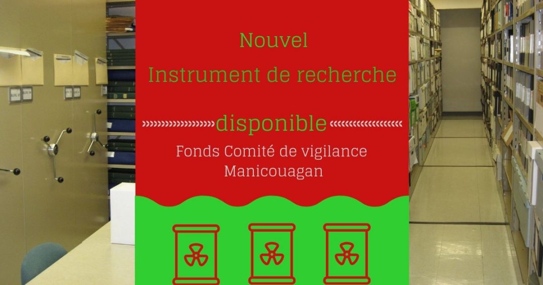 Il s’agit du Fonds Comité de Vigilance Manicouagan. Vous pouvez le trouver dans notre bibliothèque ou dans le chemin d’accès suivant: Centre d’archives > Nos fonds et collections > P089 Fonds Comité de Vigilance Manicouagan et cliquer sur Instrument de recherche au bout de la ligne.