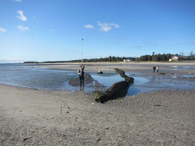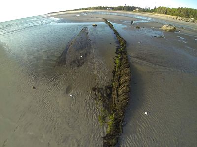 Cette équipe de terrain formée des archéologues Érik Phaneuf de la firme AECOM et Mathieu Mercier-Gingras de l’Institut de recherche en histoire maritime et archéologie subaquatique (IRHMAS) de Montréal a étudié pendant deux jours les vestiges de l’épave du Mélicite, qui refait surface à peu près à tous les dix ans en raison de très fortes marées. Cette année, une grande partie de la coque a été déterrée à la suite d’une tempête hivernale survenue vers le mois d’avril.