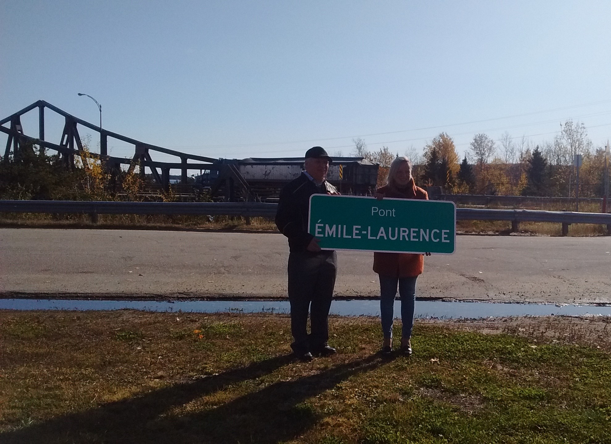 Afin d’officialiser cette nouvelle dénomination, deux panneaux où il est inscrit « Pont Émile-Laurence » sont maintenant installés aux abords du boulevard Laflèche, soit un dans chaque direction. La Société historique de la Côte-Nord et le Comité sont fiers de l’aboutissement de projet, qui a nécessité un peu plus de trois ans de démarches, avec l’aval de la Ville de Baie-Comeau et la décision de la Commission de toponymie du Québec rendue le 27 septembre.