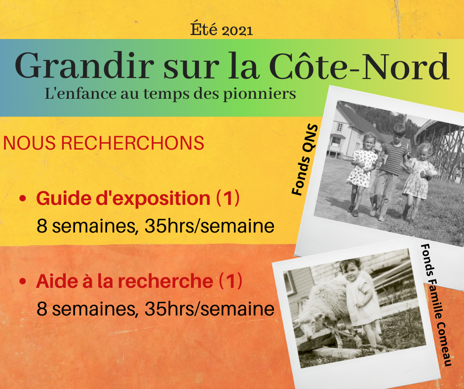 L’employé(e) devra accueillir et accompagner les visiteurs de l’exposition, fournir l’information historique/scientifique et répondre aux questions, assurer la surveillance et la propreté des lieux. Sa présence sera nécessaire aux événements/activités faits conjointement à l’exposition: inauguration, conférences, animations. Il/elle informera les visiteurs des activités récréotouristiques de la région, particulièrement celles à proximité. Il/elle fera des tâches connexes liées au domaine de l’archivistique: transfert numérique de documents anciens (numérisation),indexation de journaux, saisie de données généalogiques, inventaire de fonds et collections d’archives.