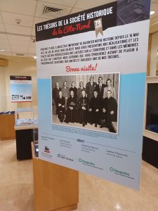 Plusieurs panneaux survolent l’histoire de la Société historique depuis sa fondation. Ils évoquent la mémoire de ses fondateurs et soulignent sa présence dans le milieu ainsi que certaines de ses grandes réalisations. La Société historique est à l’origine de plusieurs expéditions archéologiques, dont une à l’Île aux Œufs sur les traces du célèbre naufrage d’une partie de la flotte de l’amiral Walker en 1711. D’ailleurs, une baïonnette retrouvée sur les lieux de cette tragédie fait partie de l’exposition.