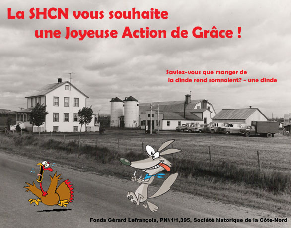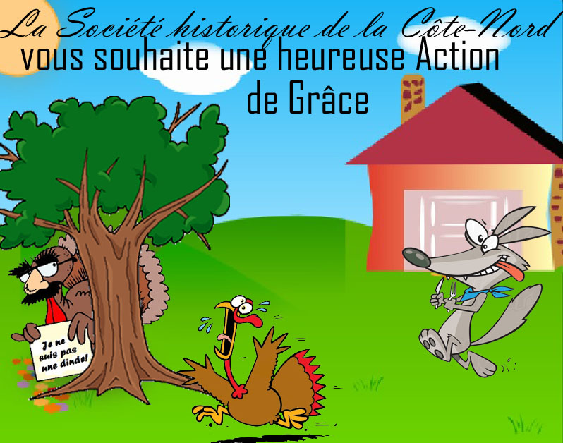 La Société historique de la Côte-Nord souhaite vous rappeler que ses locaux, situés au 2, Place La Salle, seront fermés lundi, 8 octobre 2018, en raison de l’Action de Grâce. Nous serons de retour mardi, le 9 octobre, comme à l’habitude.